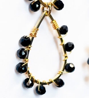 Pendiente aro con cuentas doradas