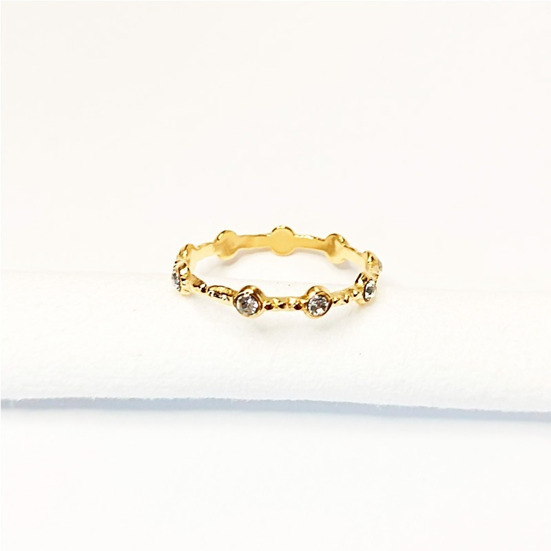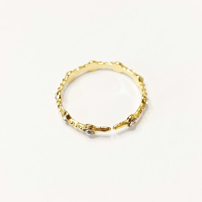 Anillo de acero inoxidable, con circonitas, baño de oro de 14k, ajustable y waterproof.
