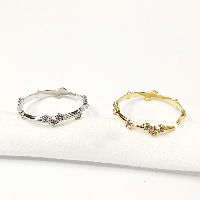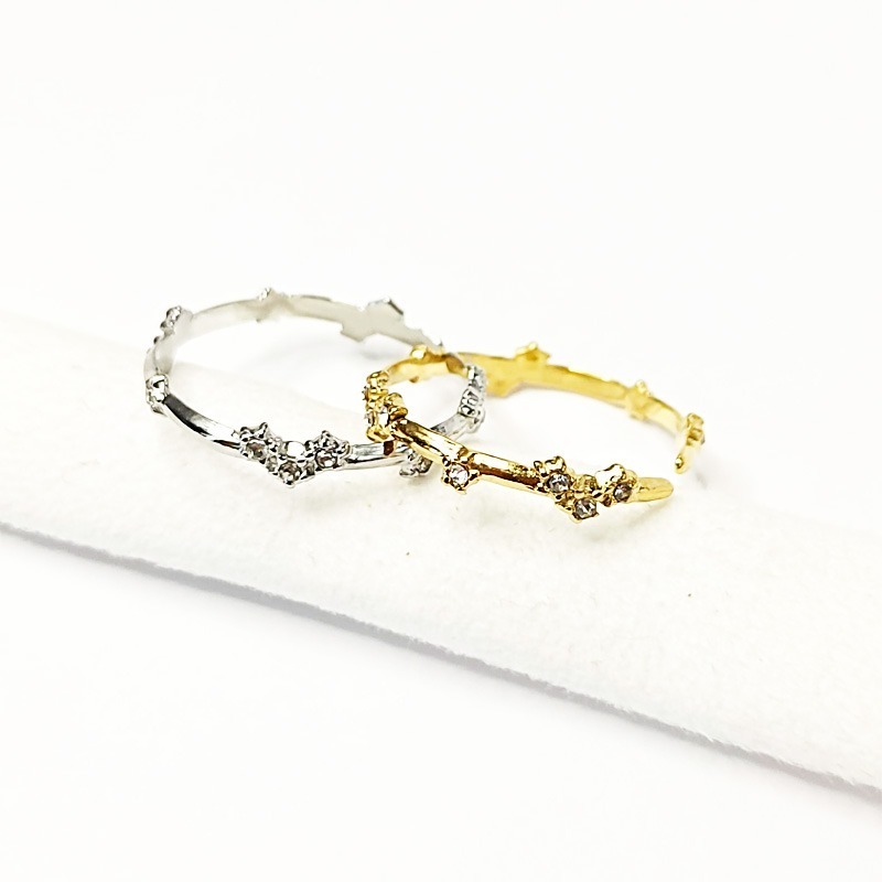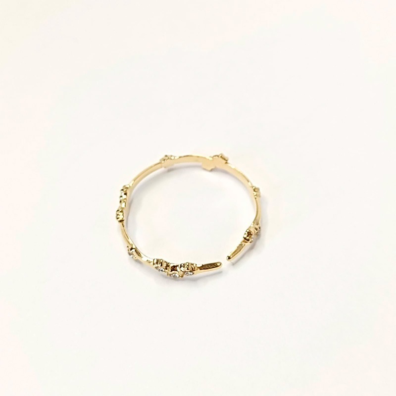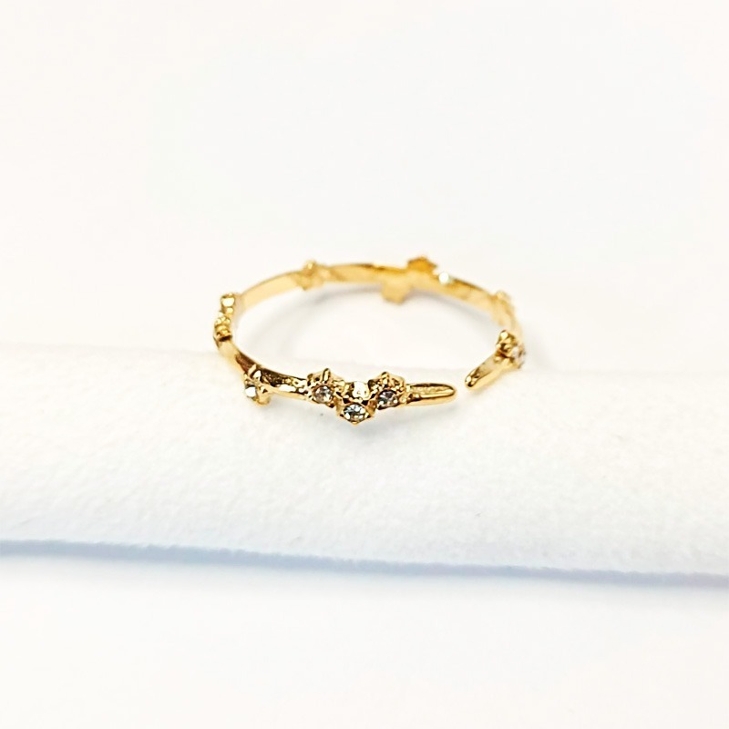 Anillo ajustable dorado o plateado en acero inoxidable con forma de corazón de estrellas