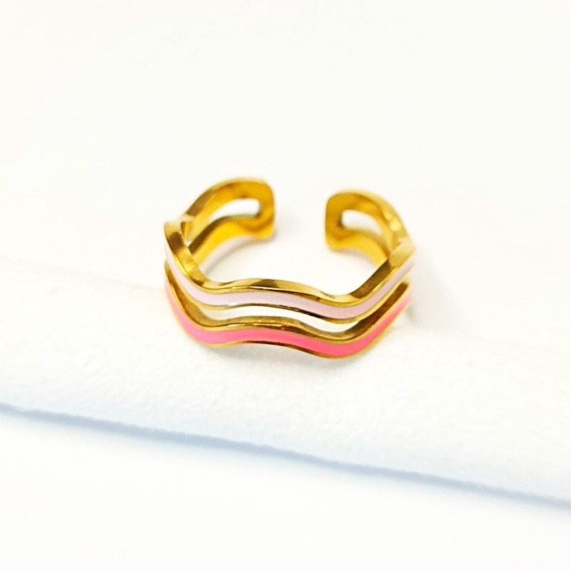 Anillo ajustable de acero inoxidable con terminaciones en diferentes colores y fondo dorado
