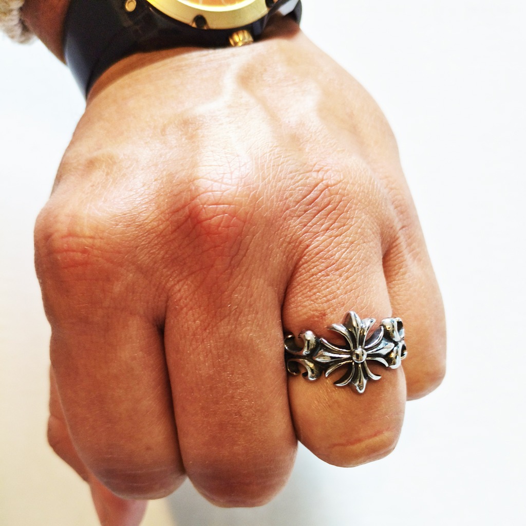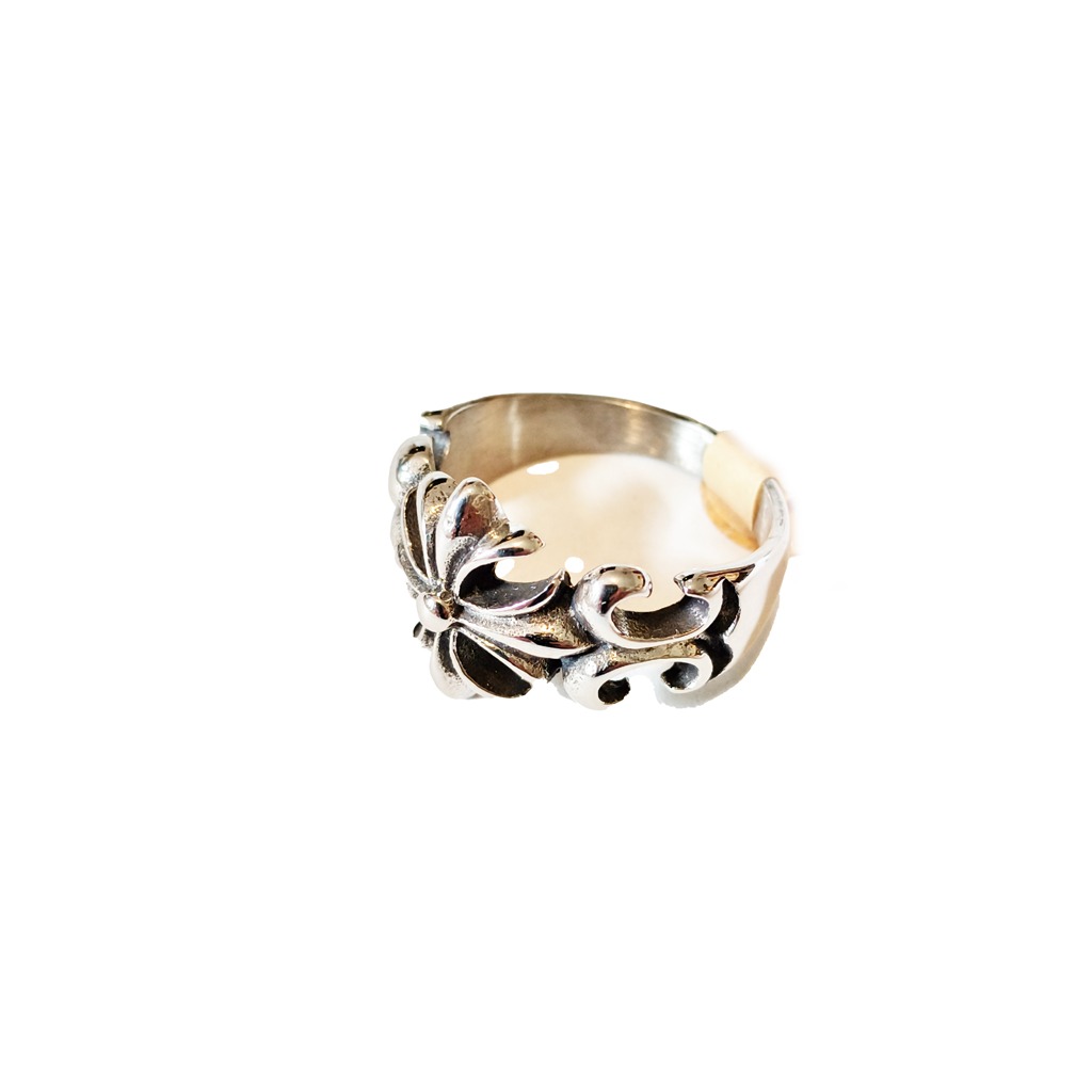 Anillo de acero, trabajado en forma de Flor de Lis, tiene una cruz que simboliza la caballerosidad, la nobleza, la pureza y el honor.