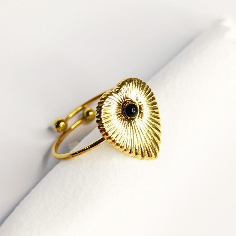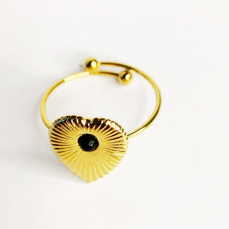 Anillo ajustable acero inoxidable con forma de corazón en dorado. Terminaciones muy suaves que no dañan el dedo.
