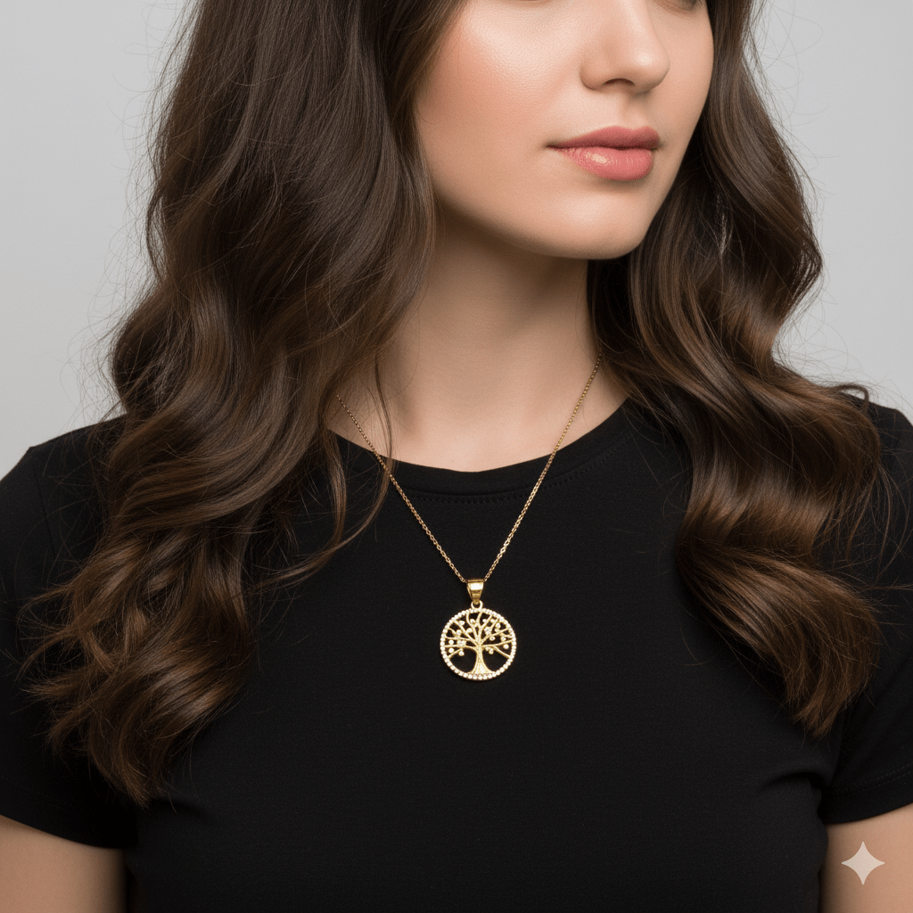 Este hermoso Colgante del Árbol de la Vida es más que una joya; es un amuleto con un profundo significado. El detallado diseño circular y calado representa la conexión, el crecimiento personal, la fuerza y la familia. Es el regalo perfecto y una pieza esencial en cualquier joyero.