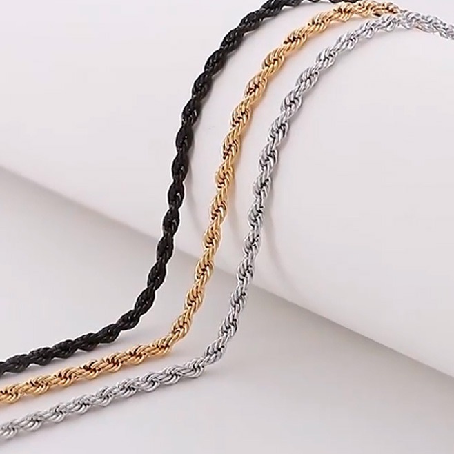 Disponible en tonos dorado, plateado y negro, la cadena ofrece una variedad de opciones para adaptarse a tu estilo y preferencias personales.