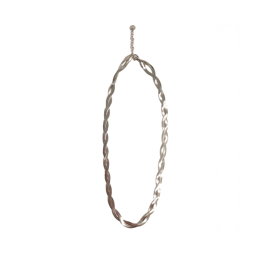Cadenas de acero inoxidable planas que se entrelazan suavemente, creando un efecto de cuerda retorcida que le da un toque sofisticado y moderno.