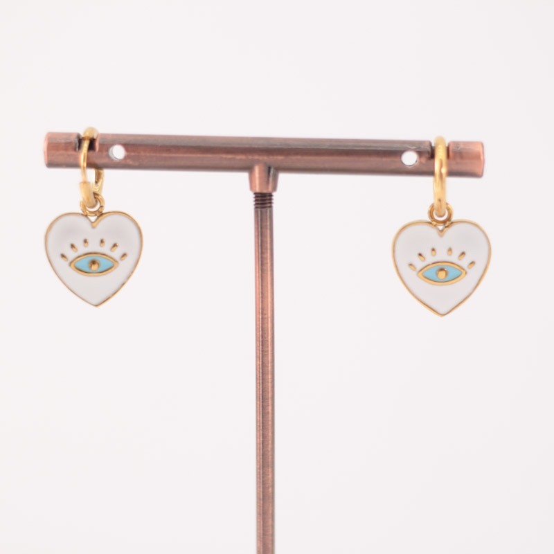 Pendientes con colgante forma de corazón y ojo protector, acero inoxidable.