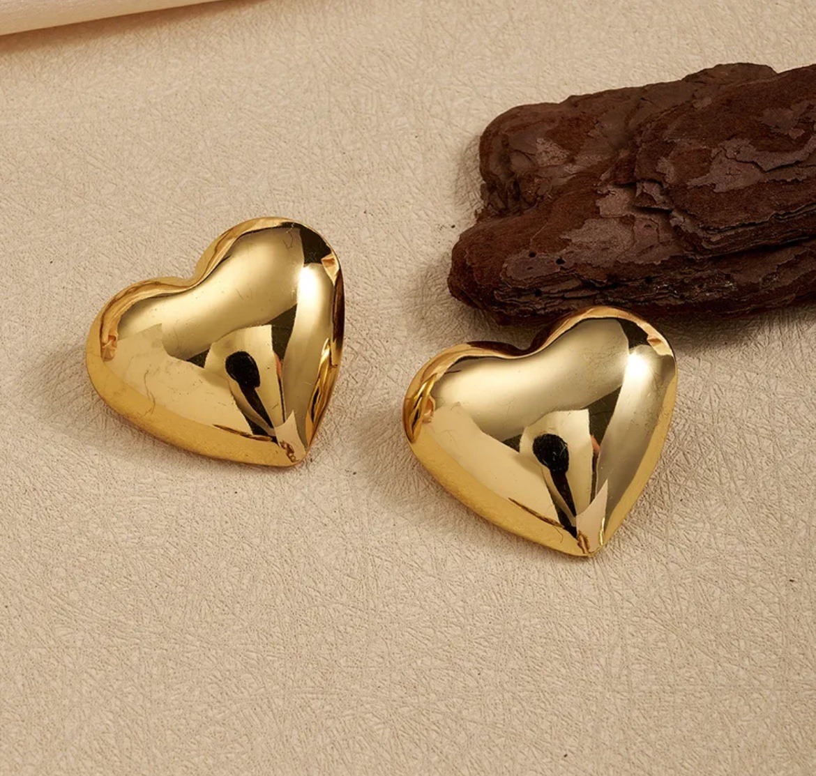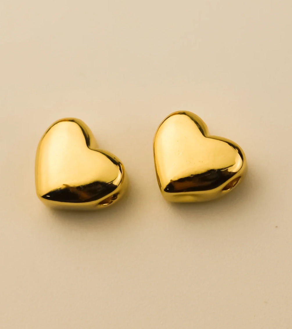 Pendientes precios de acero chapado, con cierre de tuerca a presión. Modelo de botones de corazón.