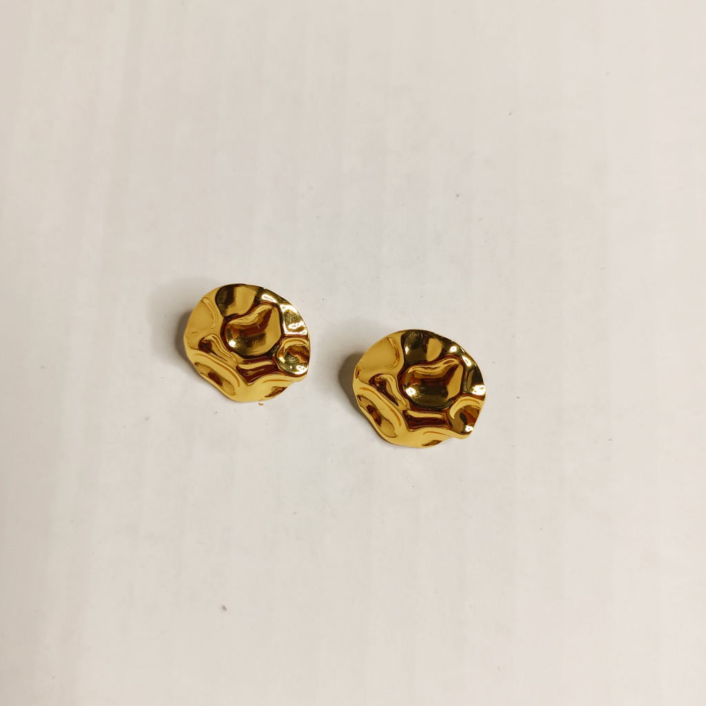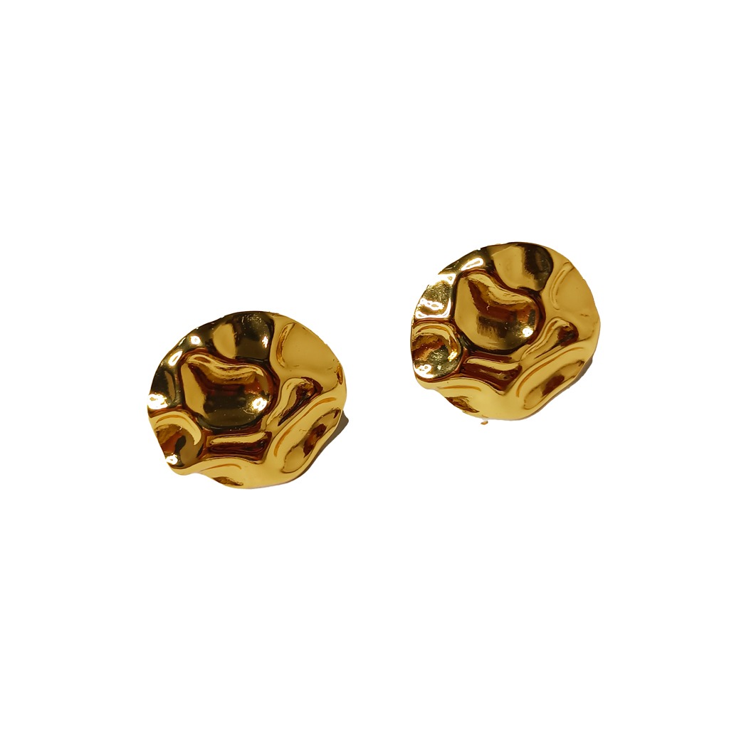 Aros Ondulados Irregulares Dorados de Acero Inoxidable. Diseño escultórico, moderno y muy trendy. Ligeros, hipoalergénicos y perfectos para un look sofisticado y diario.