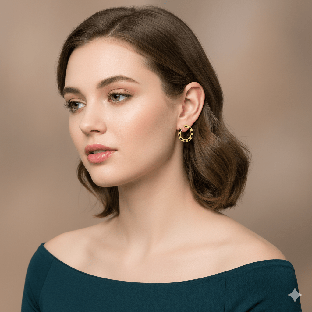 Pendientes de aros con esmalte negro y tono dorado de acero inoxidable con su resistencia a la corrosión, sus propiedades higiénicas y sus propiedades estéticas hacen del acero inoxidable un material muy atractivo para satisfacer diversos tipos de demandas