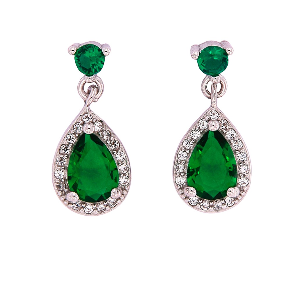 Hermosos pendientes con circonitas color esmeralda y cierre a presión.
