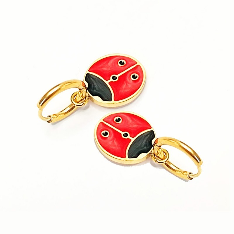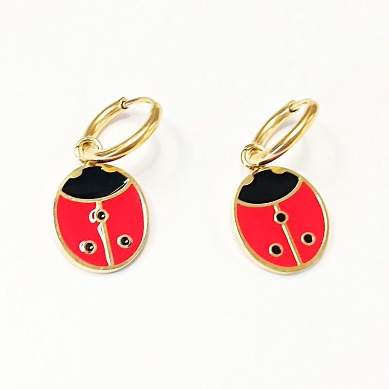 Pendientes de acero inoxidable con colgante forma de mariquita