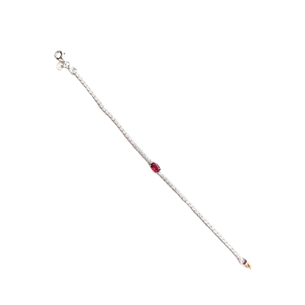 Material: Plata de Ley 925 con circonitas cristal y rosa, modelo riviere. Tamaño: 15cm Alargador: 2,5cm