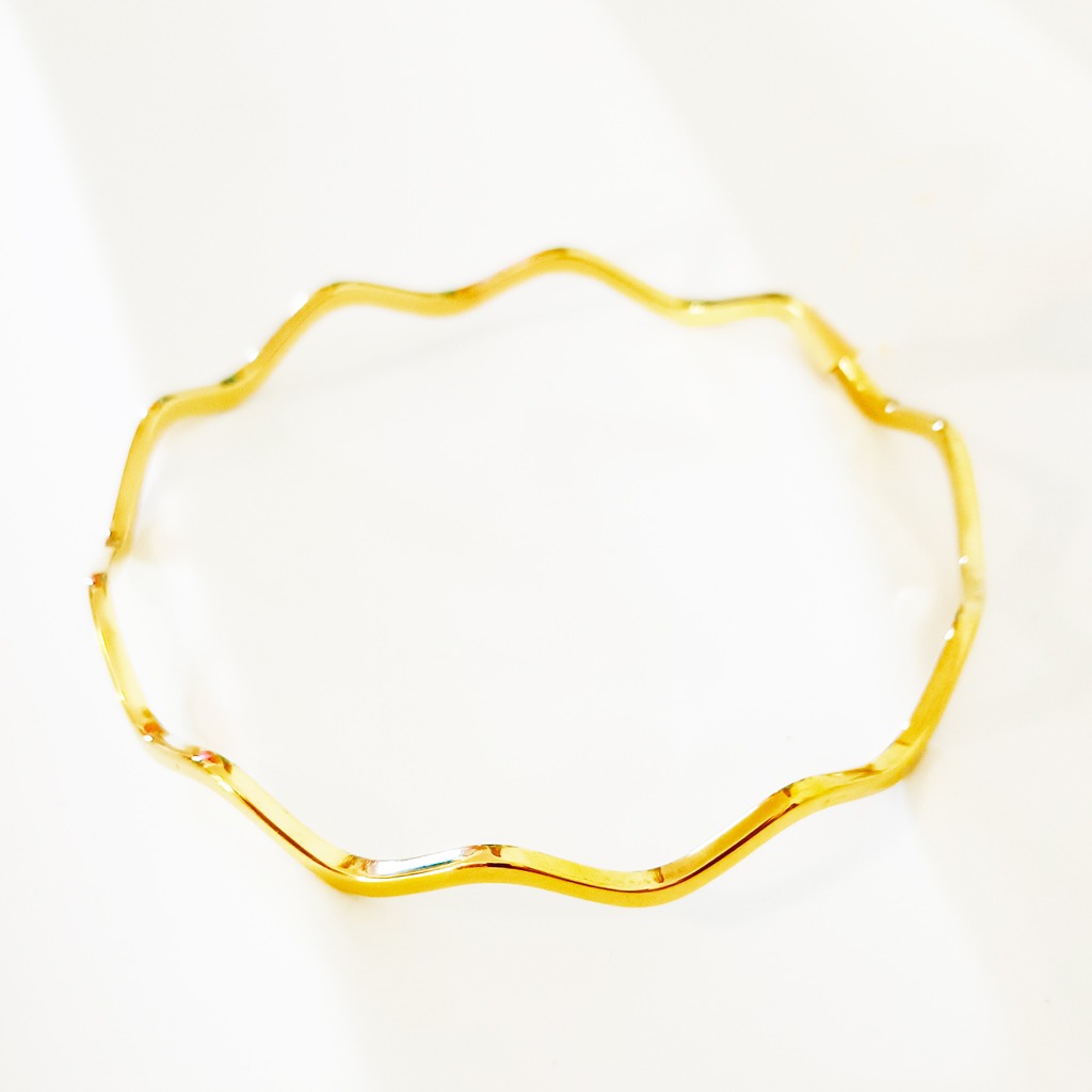 Pulsera rígida ondulada. Su forma fluida y su brillo dorado la convierten en un accesorio minimalista y moderno, perfecto para añadir elegancia sutil a tu look.